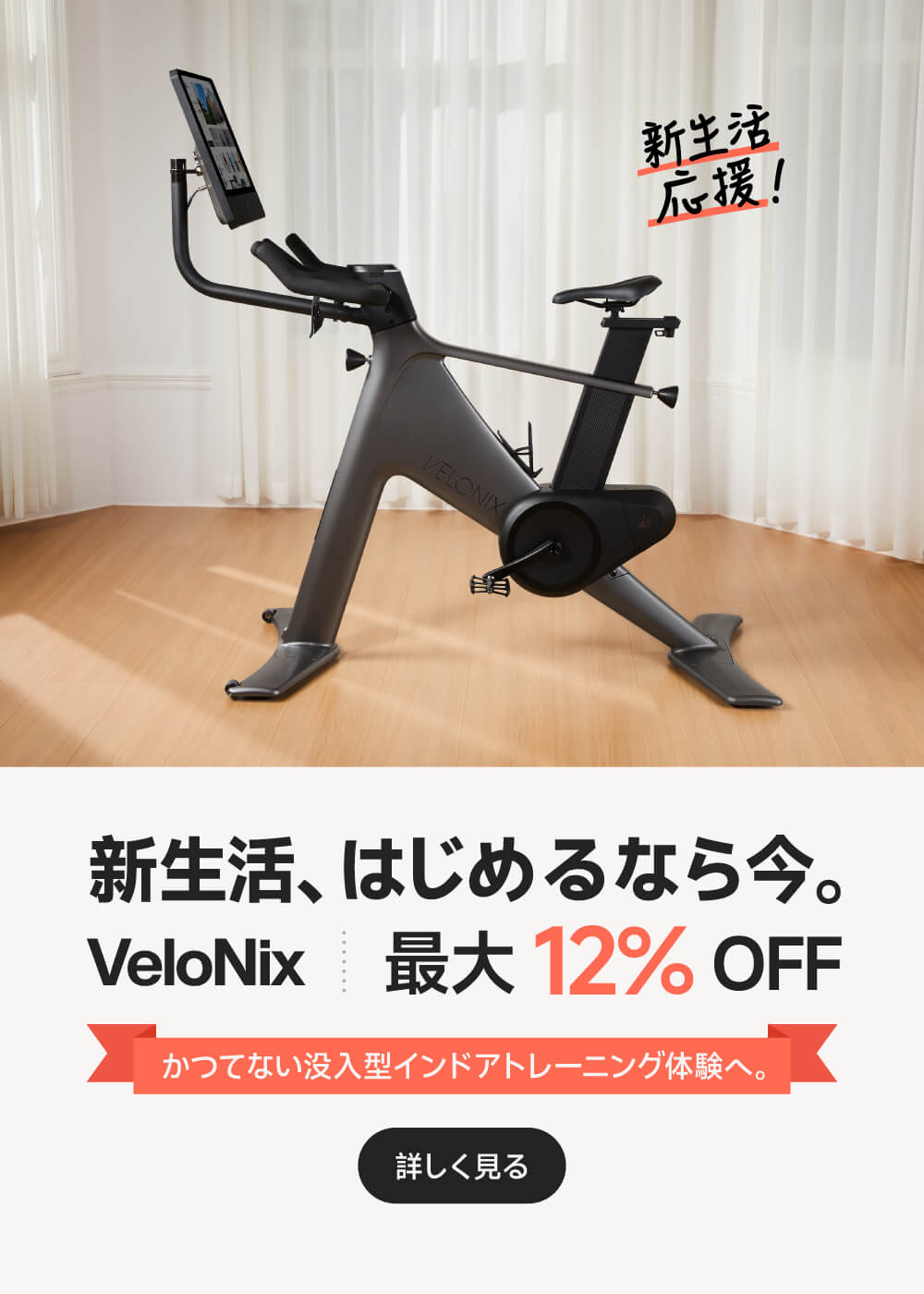 VeloNixは単なるバイクではありません。最先端の技術と優れたデザインが融合した、究極のフィットネス体験を提供します。スマート、多機能、そして没入感あふれるトレーニングを、自宅で楽しめます。